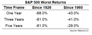 Here are the worst returns over those same time frames: