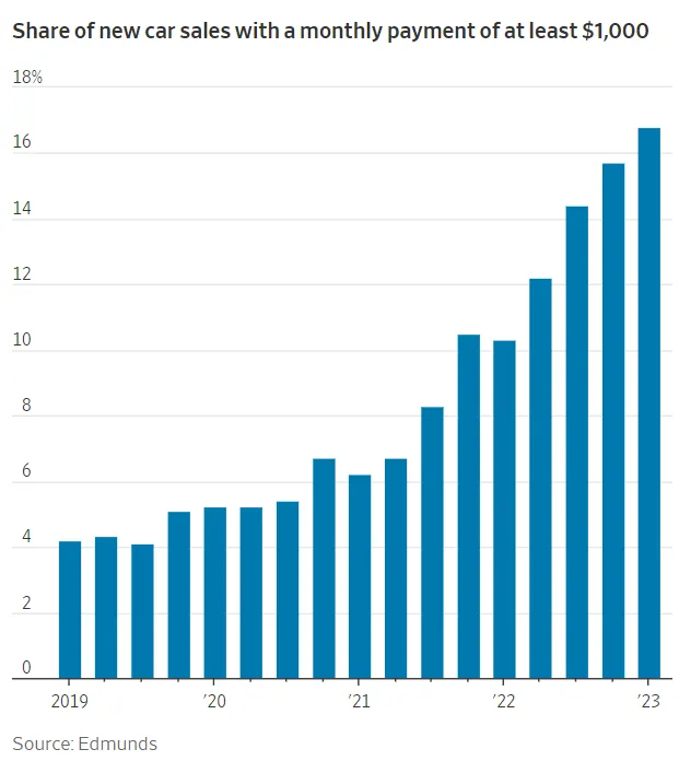 Almost one in five new vehicles purchased in the first half of 2023 came with monthly payments of $1,000 or more.