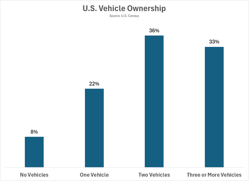I want to switch gears for my final chart and talk briefly about cars. Today, 70% of U.S. households own two or more vehicles: