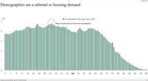 A big reason demand keeps rising is simply due to demographics. There are more 33-year-olds than any other age in America: