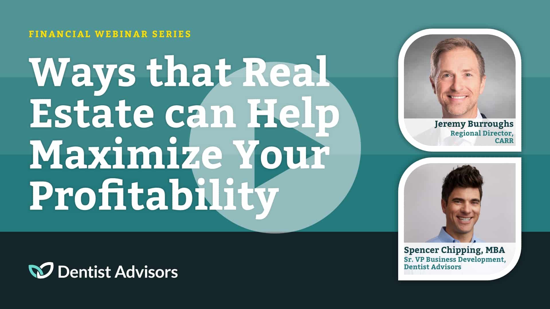 Commercial real estate terms, timelines, and negotiation strategies are all factors Jeremy Burroughs from CARR will be reviewing in this exclusive webinar with Dentist Advisors. Learn how real estate impacts the profitability of a dental office and what demographic and competitor information you should review before making a real estate purchase.