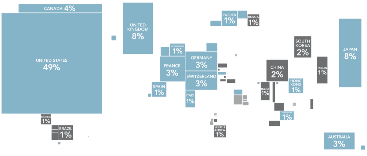 Properly diversify. Compare your stock portfolio with this map of global markets. As you can see from this illustration, the U.S. contains approximately 49% of all equities in the world and the U.K. contains 8%. What percentage of your portfolio is in U.S. stocks? What percentage is in U.K. stocks? Look at the percentage of stock domiciled in each country across the globe and compare that to your portfolio. While this isn’t a recipe for a perfect portfolio, this guideline helps you see how diverse your portfolio really is when taking a global perspective.