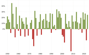 The following graph shows annual S&P 500 returns since 1950: