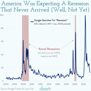 This messaging from the media came through loud and clear. Take a look at this graph which shows Google searches for “recession” hit an all-time high towards the end of last year: