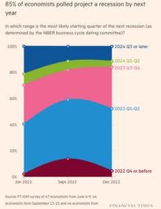 Economists, people paid to study the economy, were even more dire in their predictions. Here’s a poll showing the vast majority of economists expected a recession in 2023: