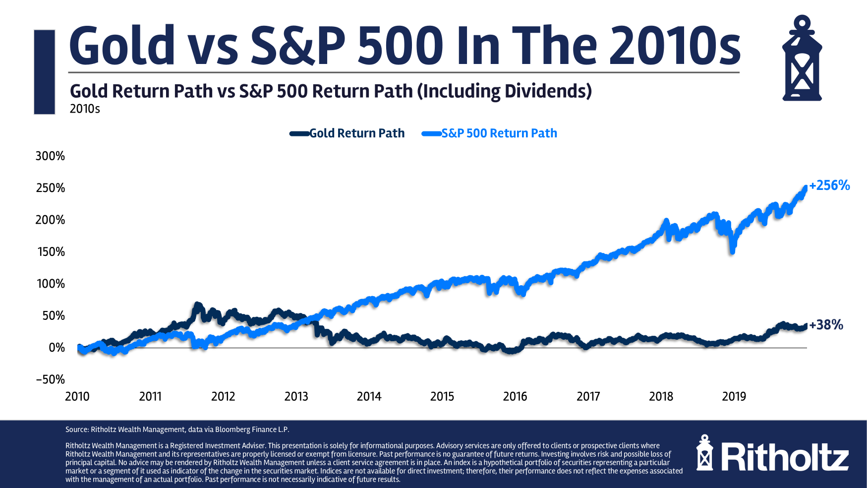 Gold then had a good decade during the 2000s, followed by another poor decade in the 2010s: