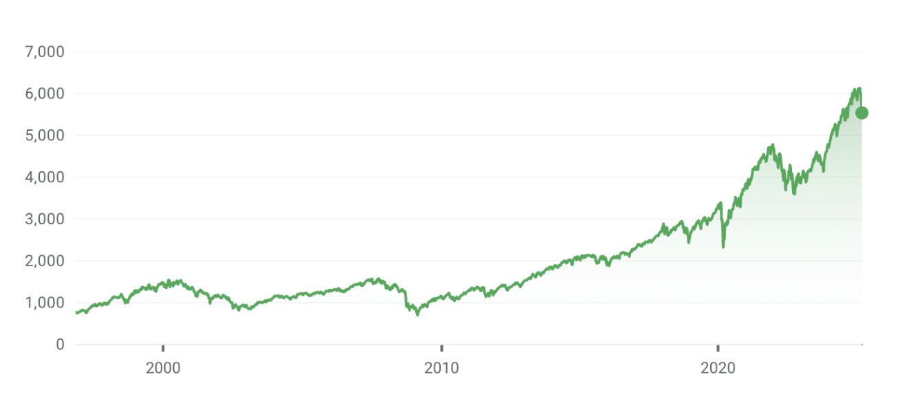 The S&P 500 (an index tracking the 500 largest companies in the U.S.) is down about 5.75% this year and down around 10% from the high reached in late February.